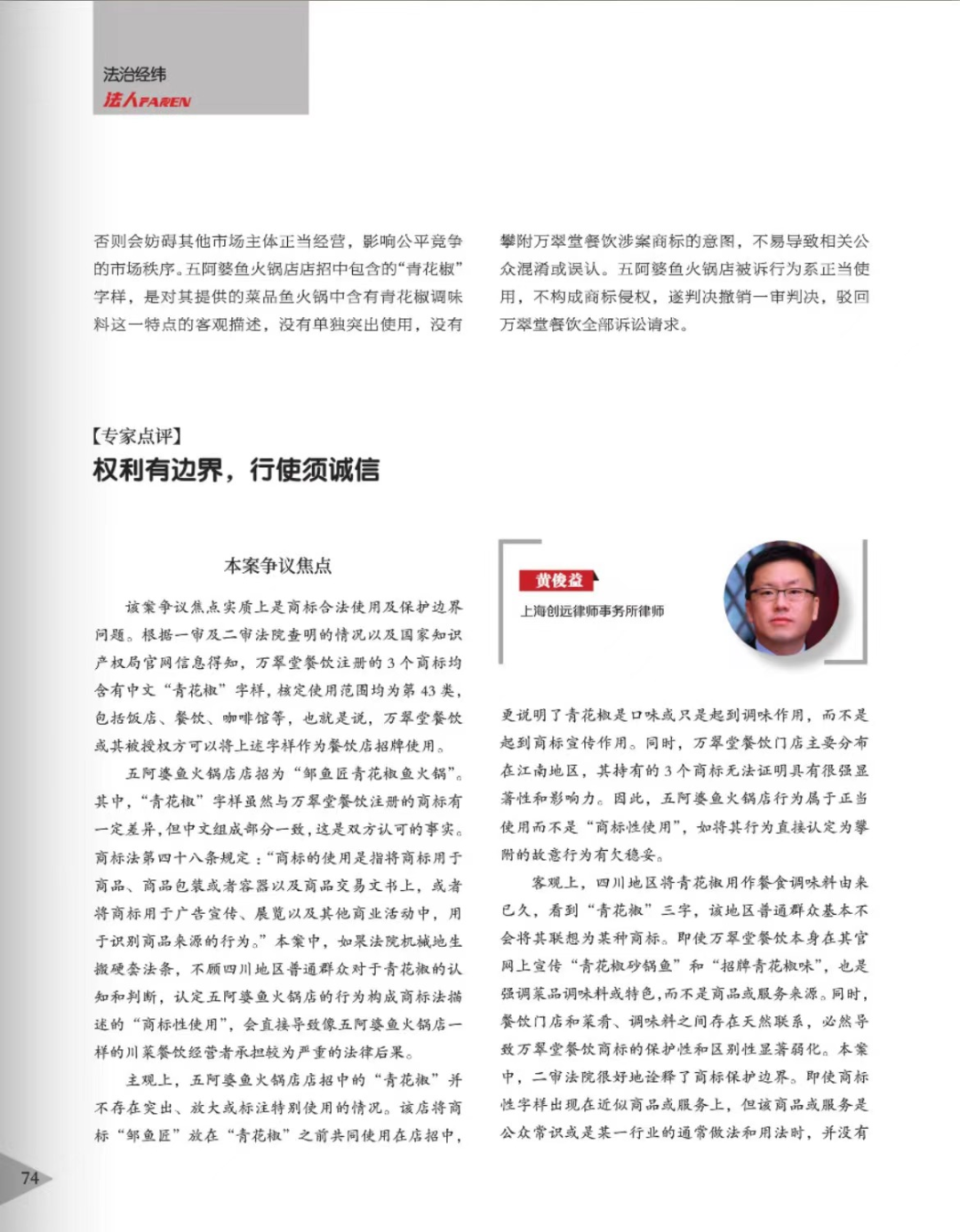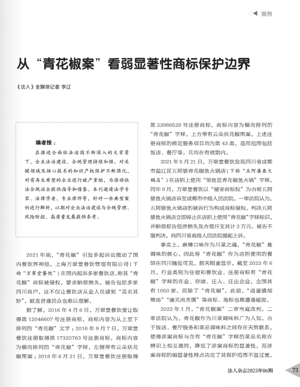 锦州辉知简讯 | 辉知队黄俊益律师应“法治日报”旗下杂志邀请,就“青花椒”案发表专家点评