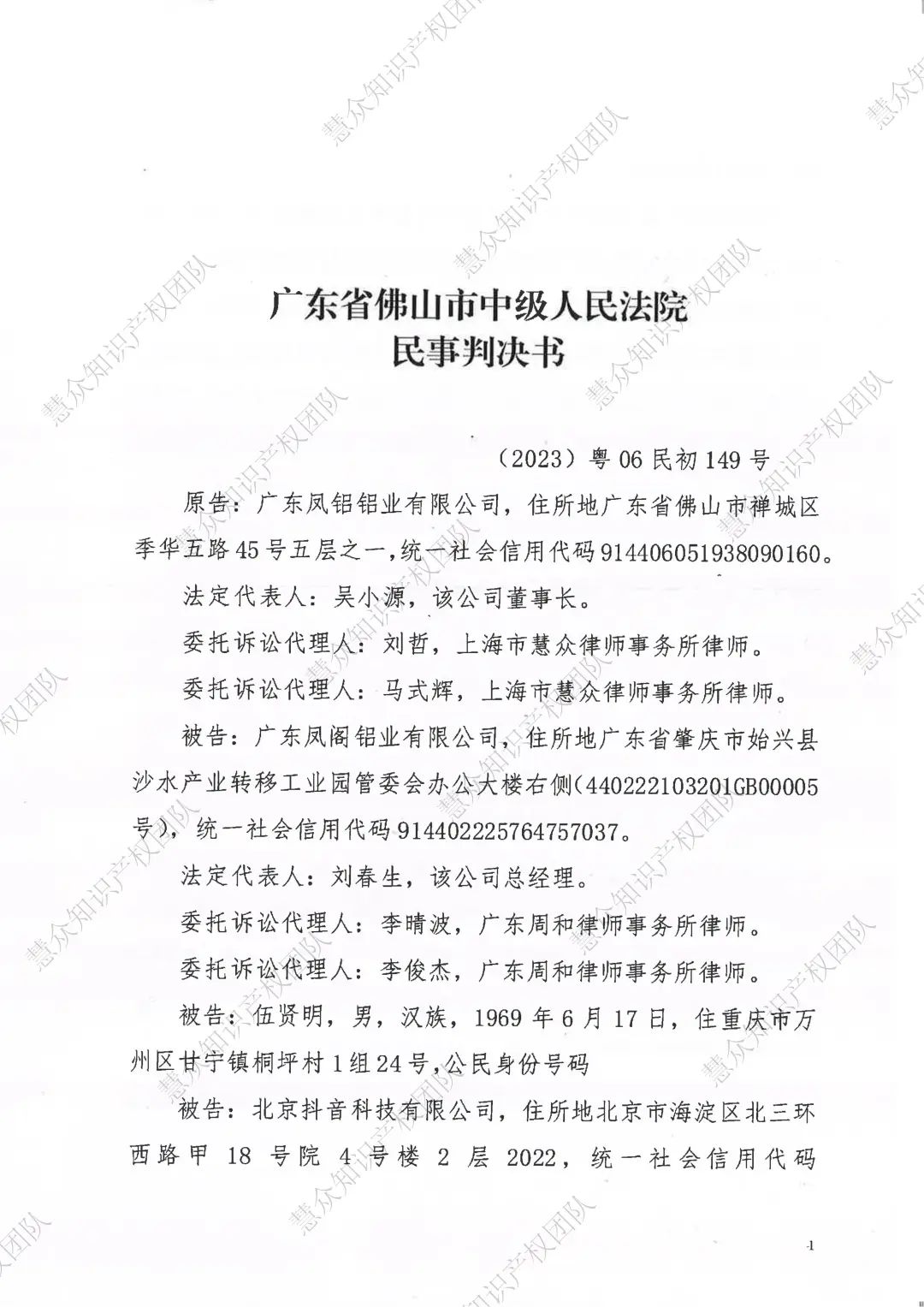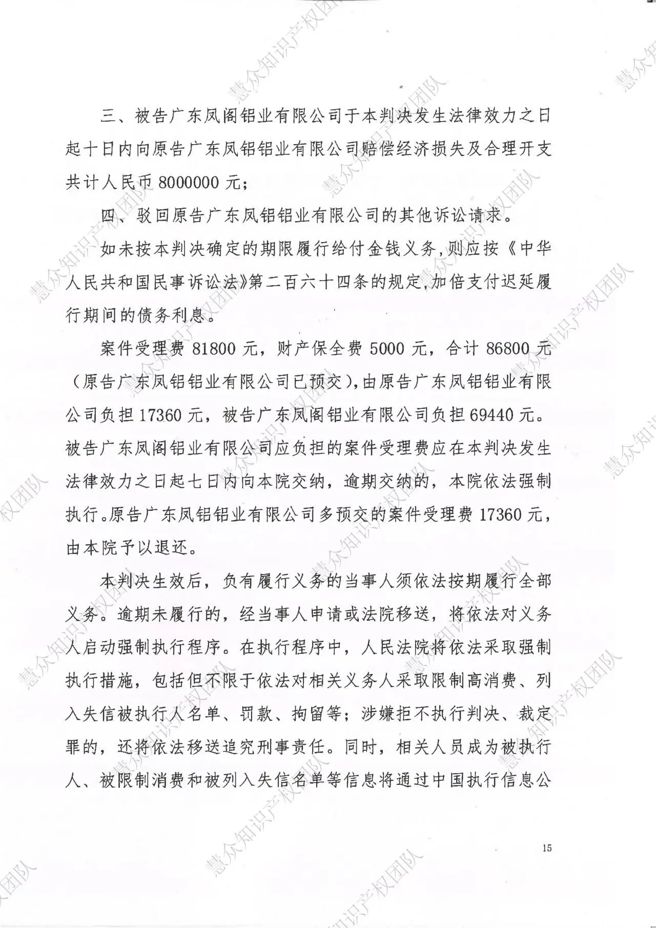 锦州判赔800万!辉知队代理“凤铝”商标维权案胜诉